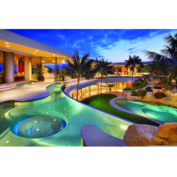 Благодаря таким техническим инновациям, можно говорить, что бассейны, которые используют подобное оборудование, имеют ряд преимуществ. Главным, положительно влияющим фактором, можно назвать их неповторимую красоту, яркость и красочность в ночное (вечернее) время. Благодаря системе подводных прожекторов купание становиться более безопасным. Следует знать, что лампа мощность 300 ватт способна осветить пятнадцать метров закрытого бассейна, либо двадцать три квадратных метра открытого бассейна.